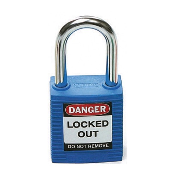 CANDADO DE SEGURIDAD BRADY EN ACERO con aislamiento plástico en color AZUL, pack 6 unid. Una llave por candado.