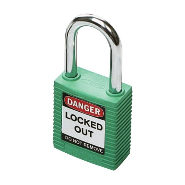 CANDADO DE SEGURIDAD BRADY EN ACERO COLOR VERDE, pack 6 unidadesCANDADO DE SEGURIDAD BRADY EN ACERO con aislamiento plástico en color VERDE, pack 6 unid. Una llave por candado.