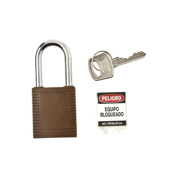 CANDADO DE SEGURIDAD BRADY EN ACERO COLOR MARRÃN, pack 6 unidadesCANDADO DE SEGURIDAD BRADY EN ACERO con aislamiento plástico en color MARRÓN, pack 6 unid. Una llave por candado.