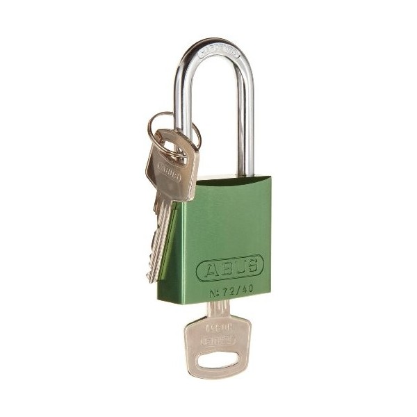 CANDADO DE SEGURIDAD BRADY "ALUMINIO" 40 mm color VERDE, pack 6 unidades y 2 llaves por candado. Resistente a la corrosión. KD (Keyed different) Llaves diferentes. Altura arco 40 mm y 6,5 mm diam. Dim. cuerpo: 40 x 40 x 19 mm