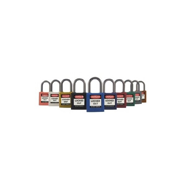 CANDADO DE SEGURIDAD BRADY "COMPACT" EN ACERO con aislamiento plástico en color VIOLETA, 38 mm pack 6 unid. Una llave por candado. Cuerpo aislado en nylon y arco en aluminio.