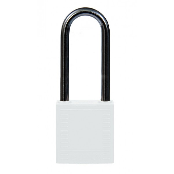 CANDADO DE SEGURIDAD BRADY "COMPACT" EN ACERO con aislamiento plástico en color BLANCO, 50 mm pack 6 unid. Una llave por candado. Cuerpo aislado en nylon y arco en aluminio.