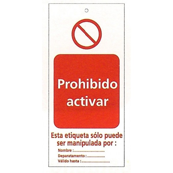 Tarjeta bloqueo PROHIBIDO ACTIVAR 75 x 160 mm (c/10 unid. + 10 bridas)