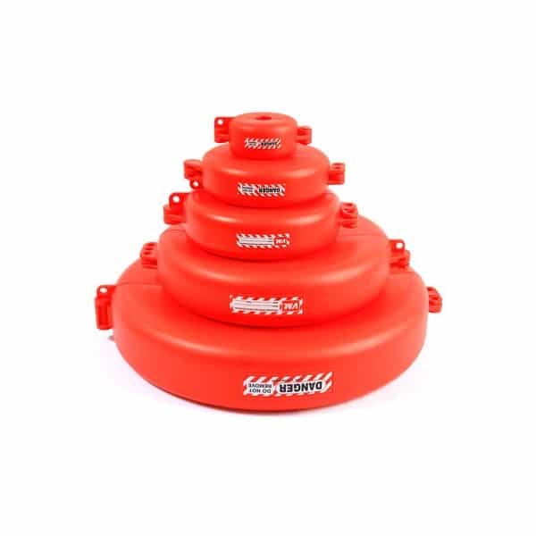 BLOQUEO DE VÁLVULAS VOLANTE ESTÁNDAR. Diámetro del volante 165-254mm. Color rojo. Fabricado en polipropileno de alta resistencia a golpes y productos químicos. Resistente temperaturas de -30ºC a +150ºC. Diámetro máximo del arco: 6,5 mm. Altura mínima del arco 38mm