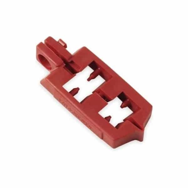"Single Multi-Pole" está diseñado para interruptores que tienen orificios en la pastilla del switch. Su doble cavidad se ajusta a diferentes medidas de lengüetas del switch y su dispositivo acepta argollas de candados de hasta 9/32" (7,15 mm) de diámetro. Dimensiones 21.08mm Alto x 8.9mm Ancho x 54.6mm Largo. Envase de 6 unidades.