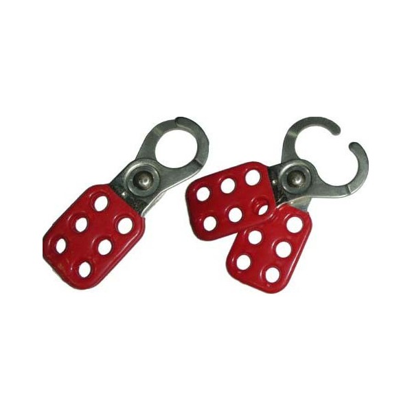 MANDÍBULA DE SEGURIDAD en acero revestida de vinilo, en color rojo, pequeña Diam. de aro 25 mm. Diámetro de arco: 9,5 mmAltura de larco: 20 mm. Capacidad 6 candados. c/12 unidad